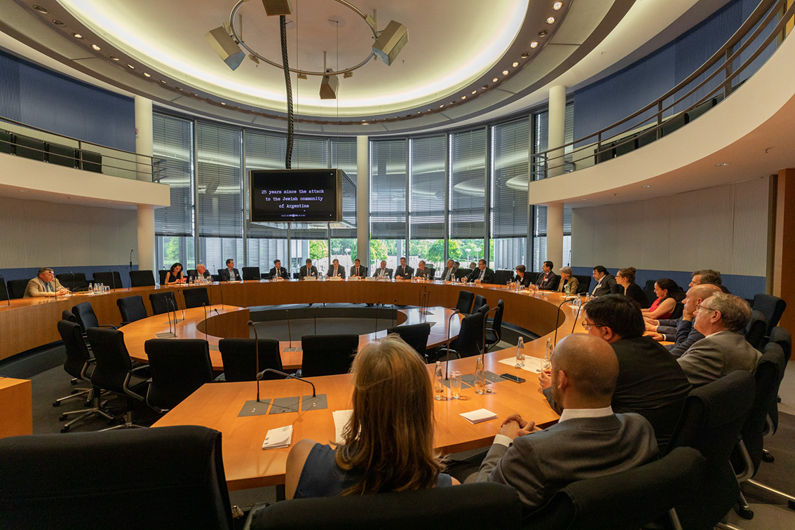El miércoles 5 de junio, tuvo lugar en el Parlamento alemán -Bundestag- un acto conmemorativo por el 25 aniversario del atentado a la AMIA. El acto fue co-organizado por esta Embajada y el Grupo Parlamentario de amistad con los Países del Cono Sur del Bundestag, integrado por diputados alemanes de todos los partidos con representación parlamentaria.
