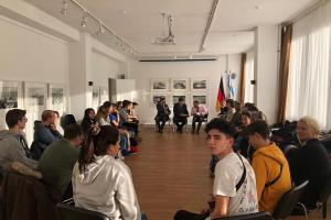 El viernes 18 el Embajador Malaroda, acompañado por funcionarios de esta Embajada recibió a los alumnos de distintos colegios de Villa General Belgrano, Provincia de Córdoba que junto a alumnos de otras provincias argentinas se encuentran en Alemania realizando un viaje de intercambio. El proyecto coordinado por la profesora Christine Kruse permite a los jóvenes desarrollar una valiosa experiencia en Alemania. El encuentro que se desarrolló en el Salón Borges de esta Embajada permitió a los alumnos tener una primer imagen de la labor que aquí se realiza y realizar preguntas al Embajador y funcionarios sobre la tarea que desarrolla un diplomático y sobre cómo se fomenta la relación nuestro país con Alemania.